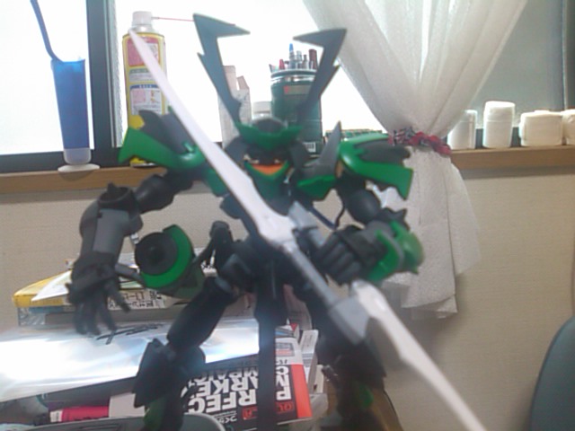 はい、というわけで002ndシーズンに登場したスサノオをマッハ仕様カラーにして組んでみました。まぁ、マッハ仕様っていうかストレートウィンドB塗装だよなこれ……。本来のマッハだったら濃いグリーンと薄いグリーン、でワンポイントにオレンジだろうし。